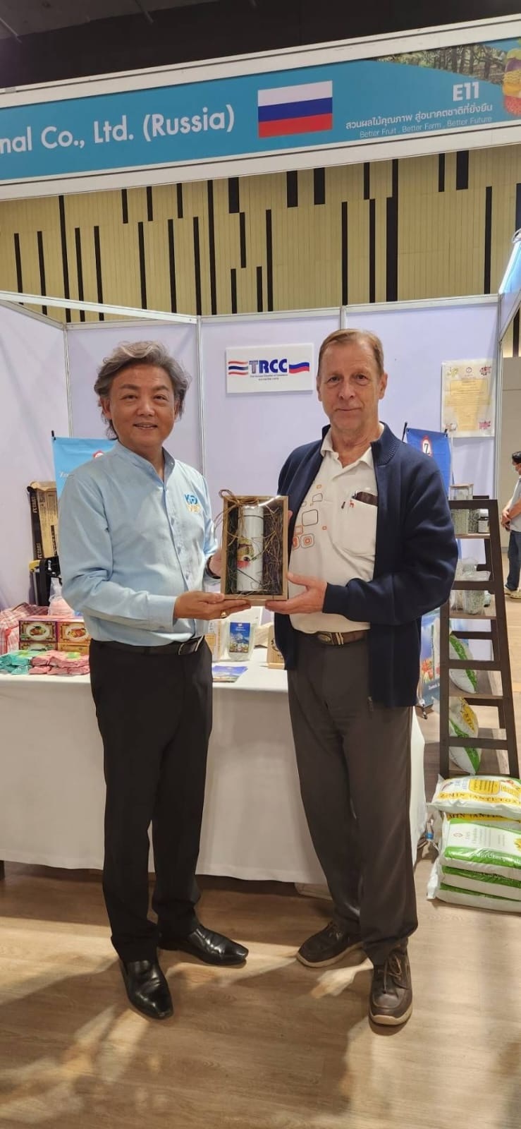 📷 Photo: Vitaly Kiselev, President of TRCC, receives a commemorative gift from the President of the Chanthaburi Chamber of Commerce at Fruit Innovation Fair 2025.